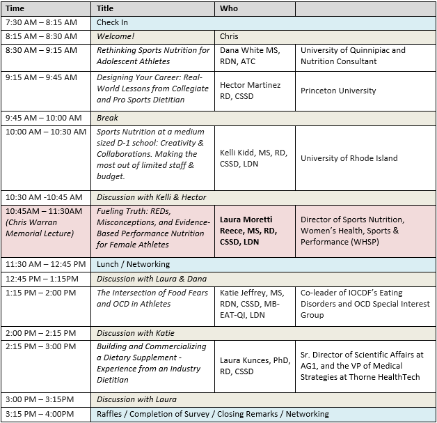 This unique event you will learn from elite level sports dietitians who have decades of experience and developed sports nutrition programs at major universities. Lectures will examine the latest evidence-based research, yet what makes this conference unique is it will include one-of-a-kind guided conversations with selected presenters. These guided conversations provide an intimate access to the top minds in sports nutrition and their applied strategies in fueling next level athletes. At the New England Sports Nutrition Conference, you will learn and connect with other sport nutrition professionals and aspiring dietitians with catered lunch to network with others.